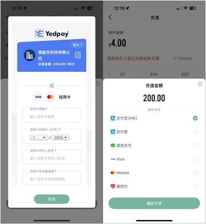 Yedpay將為「充美好」電動車充電應用程式支援VISA、Mastercard、支付寶、微信支付及雲閃付等多種支付方式。