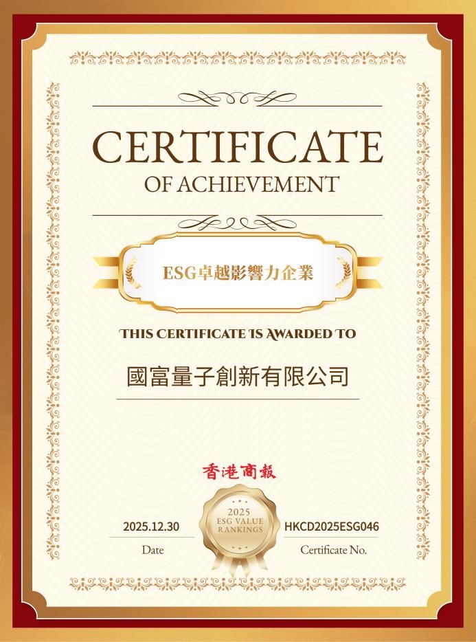 經過報名初審、數據採集調研、專家顧問團評審和組委會定榜等環節,最終產生2025年度上市公司卓越ESG價值榜企業獲獎名單。國富量子榮膺這兩項重量級獎項,不僅彰顯了國富量子在環境、社會和治理領域的卓越表現,也體現了公司在可持續發展道路上的領導力與創新精神。