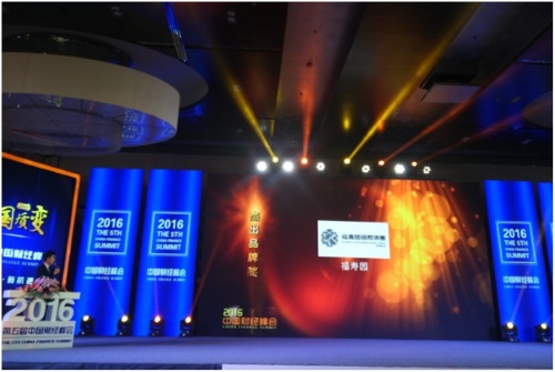 香港, 2016年7月22日 - (亞太商訊)  - 7月21日至22日,以“中國質變:新挑戰 新機遇”為主題的第五屆中國財經峰會在北京舉行。峰會評選出了新常態下推動經濟增長與社會進步的企業與人物典範等獎項,福壽園國際集團作為中國殯葬行業唯一參選品牌,與空氣產品公司、英格索蘭中國、海爾集團、統一企業、浦發銀行等榮獲“2016傑出品牌形象獎”。福壽園國際集團文化教育委員會主任伊華代表集團領取榮譽,並做“突破傳統 啟迪未來”主旨演講。