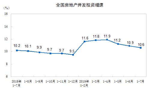 房地產行業已經成為中國經濟的支柱產業,近十年來始終保持較快的發展速度,已經成為吸引外商投資和促進中國企業走出去的重要行業和市場。根據國家統計局數據,2019年1-7月份,全國房地產開發投資72,843億元,同比增長10.6%。其中,住宅投資53,466億元,增長15.1%,住宅投資佔房地產開發投資的比重為73.4%。7月份的房地產開發景氣指數(簡稱「國房景氣指數」)為100.90,與去年同期相比有所回落,但環比基本持平。就行業數據而言,雖然2019年房地產市場整體屬於調控週期,同比去年整體表現呈回落態勢,但行業仍在快速的發展,依然是值得關注的頭部行業。