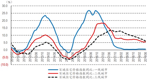 中指院口徑的百城價格指數(合同銷售口徑房價,更真實反映當下房價)來看,三線城市自2016年3月以來實現連續40個月的上漲,並且2019年1-6月仍保持在6-7%左右同比漲幅。從房價角度也充分反映,三四線城市需求並未出現劇烈下跌。