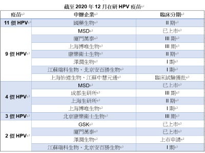 香港, 2020年12月6日 - (亞太商訊) - 在第十二屆(2020)中國醫藥企業家科學家投資家大會(啟思會)主論壇舉辦的圓桌對話 “創新的品質和賽道”中,嘉賓們聊high了,居然將話題引入了危險的方向,大家熱烈討論了PD-1未來會賣到多便宜,結果“3萬塊一年!”得出後,大家都驚呆了,曾經治療費用幾十萬一年的市場寵兒、癌症剋星、大免疫治療領域的卡麗熙、跨腫瘤適應症應用的凡爾賽,他怎麼就不香了?他怎麼就砍價砍到了腳脖子,一折起啊?實際情況是,目前6家獲批的PD-1都各有特點,能滿足很多臨床需求,也會帶來極高的臨床獲益,但是,他架不住在研的管線還有幾十個啊,一旦這些品種都釋放出來,到時候為了競爭和生存,大家在各自努力學術推廣、加強行銷之外,能祭出的殺招也就只有砍價了。 回過頭來看,今天的HPV疫苗領域何其相似,自從MSD的9價疫苗獲批以來,“唯一能預防癌症的疫苗!”、“愛她,就帶她去打HPV。”、“不止女性,男性也需要HPV的保護。”“深圳要抽籤才能打的疫苗!”、“香港告急,飛過去打的陸客耗盡了香港最後一滴HPV疫苗。”這樣的聲音層出不窮,一時間洛陽紙貴,連小米的雷軍都恨不得擊節讚歎:“好一個饑餓行銷!”在這樣的大背景下,MSD賺得盆滿缽滿,定價自然也是怎麼高貴怎麼來。然而這樣的好生意怎麼可能只有一家做,看到了這裡面巨大的商機和利潤,國內各疫苗公司摩拳擦掌,根據截至2020年12月在研HPV疫苗的列表,可以看到這一領域的在研管線,相信除已進入臨床階段的品種外,還有大量的企業在虎視眈眈。