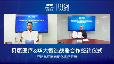 香港, 2021年3月29日 - (亞太商訊) - 2021年3月28日,上市企業蘇州貝康醫療股份有限公司(以下簡稱「貝康醫療」:股票代碼:2170.HK)與深圳華大智造科技股份有限公司(以下簡稱「華大智造」)達成測序儀戰略研發合作,貝康醫療董事長梁波博士、研發總監孔令印先生與華大智造總裁余德健先生出席了簽約儀式,雙方致力於共同開發輔助生殖下一代自動化實驗平台解決方案。其中華大智造作為生命科學領域全球領先的測序儀研發製造商,將基於胚胎單細胞水平測序研發國產化測序技術:貝康醫療將基於全球領先的胚胎單細胞擴增SDWGA技術及國內第一款獲得國家三類醫療器械註冊證的PGT試劑盒的操作流程,開發全球第一個胚胎單細胞水平的自動化測序系統,結合人工智能數據分析和報告自動生成系統,打造輔助生殖下一代自動化實驗平台整體解決方案。 貝康醫療計劃在未來5年投入4.3億元在輔助生殖領域打造從檢測到存儲的一體化整體實驗平台解決方案,實現胚胎單細胞水平的自動化基因測序和自動化超低溫存儲,完成PGT-M、PGT-SR兩個試劑盒的臨床註冊,構建覆蓋全生育週期的三類醫療器械註冊產品管線和自動化實驗室平台解決方案。根據最新指導原則《人類輔助生殖技術應用規劃指導原則(2021)版》,對於開展植入前胚胎遺傳學診斷技術的醫療機構,國家衛健委要求重點評估機構實驗室技術條件和遺傳諮詢服務能力。目前,國內輔助生殖中心都逐漸在本地化部署實驗平台開展胚胎的基因檢測,但基因測序操作流程繁瑣,需要大量手工操作,整個操作過程不可控。由於測序過程須在符合PCR要求的實驗室進行,按照標準至少需要4個獨立的實驗室,需佔用大量房間面積。貝康醫療研發的DA500自動化測序系統集成了單細胞水平的自動化樣本處理、高通量測序和數據分析三大系統,可進行單細胞全基因組擴增、文庫構建、高通量測序以及數據分析解讀一體化的全流程操作,只需1個房間即可完成植入前胚胎基因檢測的全流程工作(使用三類註冊證產品SOP流程)。該系統實現了從樣本輸入到報告發佈的自動化和智能化檢測過程,手工操作時間減少至30分鐘,降低了95%常規手工操作時間,克服實驗室場地限制,最大限度地減少人為誤差和樣本污染,同時配備本地化數據分析解讀系統,有效解決輔助生殖中心在實驗能力和報告解讀的巨大瓶頸。同時,系統能夠滿足未來基因檢測項目的擴展,可以進行PGT-M和PGT-SR等項目的同步檢測。據弗若斯特沙利文報告,2024年生殖遺傳學醫療器械市場將達到112億元,貝康醫療將根據醫療機構需求,為輔助生殖領域提供多種高通量測序平台,其中包括了達安基因DA8600高通量測序儀(半導體測序),該儀器全國獨家授權貝康醫療在輔助生殖臨床市場推廣。