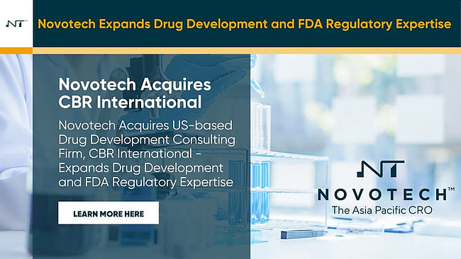 新加坡, 2023年1月12日 - (亞太商訊) - 太地區領先的生物技術 CRO Novotech 今天宣布收購全球產品開發、臨床監督和戰略監管運營集團 CBR International。 CBR 成立於 2002 年,是一家專注於協助生物技術和製藥公司應對 FDA 從早期開發到批准的要求的諮詢公司。 CBR 為 Novotech 添加了一組專家,以提供美國和全球監管、科學、質量和臨床開發服務。 CBR 的特定監管專業知識和服務包括長期監管戰略和寫作、FDA 代表、電子提交和科學事務,以支持 cGMP 商業產品開發的要求。